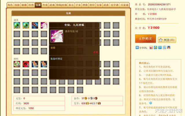 还有个九尾神狐的永久坐骑,这个坐骑大概是4000块钱!