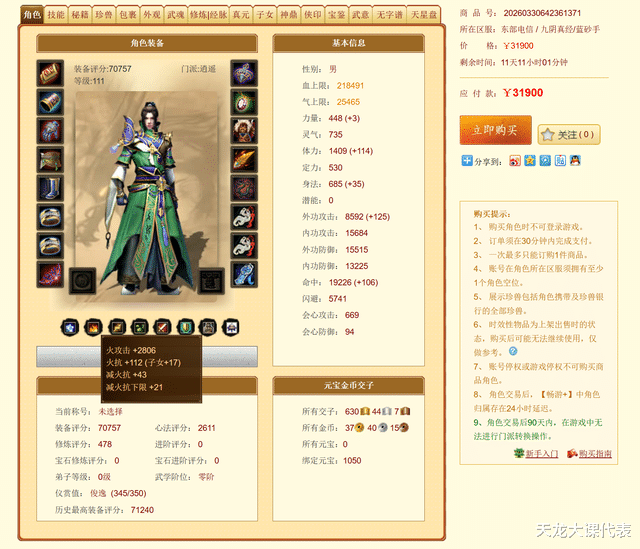天龙: 7万评分的小号售价却高达3万? 401个琉璃明珠19颗6级宝石!