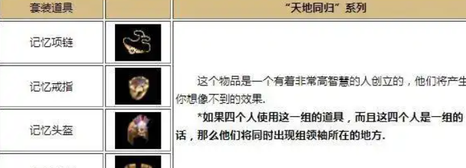 套装核心!四件凑齐召唤队友,团战神器永不过时!记忆戒指的真正威力,要搭配记忆项链、记忆手镯、记忆头盔组成 “记忆套装” 才能解锁 —— 佩戴四件套的玩家,能直接把队友拉到自己身边!不管是攻沙团战、抢 BOSS 资源,还是救援被困兄弟,这个功能都堪称 “战术外挂”,让团队凝聚力直接拉满!从复古版本到如今,记忆套装依然是稀缺硬通货,毕竟实战效果太刚需,没人能拒绝 “一秒集结” 的快乐~