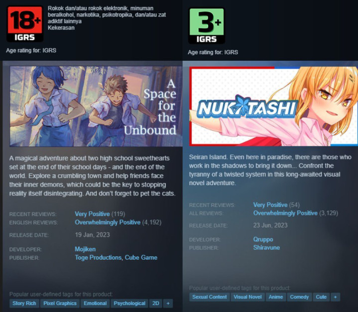 2026年起强制要求所有在印尼分发的游戏(包括Steam等平台)必须显示本地年龄评级(3+、7+、13+、15+、18+或RC拒绝分类)。