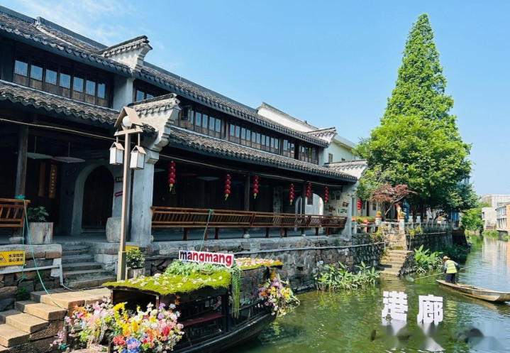 发展到现在,港廊古村有着"只缘春天"主题系列活动,包含水上花船巡游、汉风雅韵表演等传统文化展示,并定期开展古村写生、非遗体验等研学活动,已成低调的江南水乡古村。