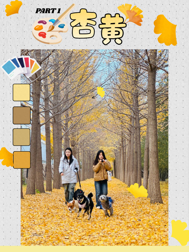 宠物在银杏林中玩耍,尽情奔跑