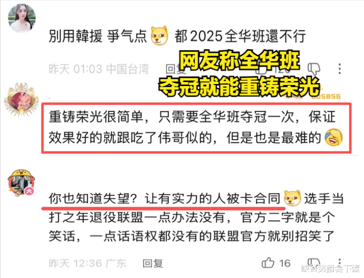 关于赛区负责人说LPL赛区能够再次回到荣光后,不少网友也纷纷提出了建议,其中有网友说道:“重铸荣光很简单,只需要全华班夺冠一次,保证效果很好,但是也是最难的。”还有网友说道:“你也知道失望,让有实力的人被卡合同?”。