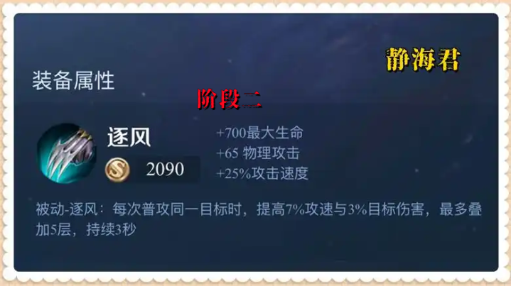 对比阶段一,阶段二的逐风增加了700点生命值,移除了切割被动,调整了逐风被动(改成需要叠层了)。