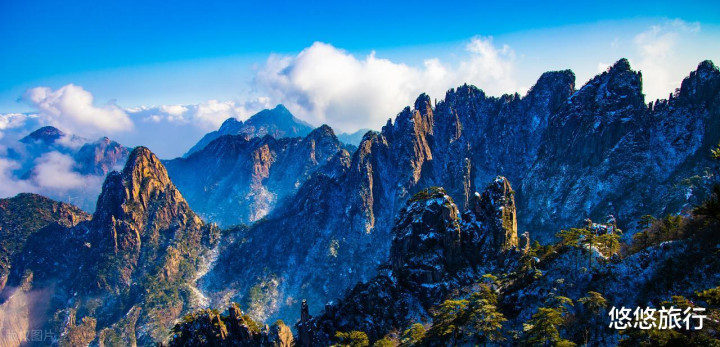 云海雪韵,黄山秋色与雪景交织期,奇松、怪石、云海、冬雪,"四绝" 同现。