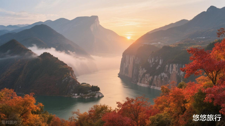 海拔1388米的三峡之巅,登顶俯瞰万山红遍,云海、江水与红叶共舞。