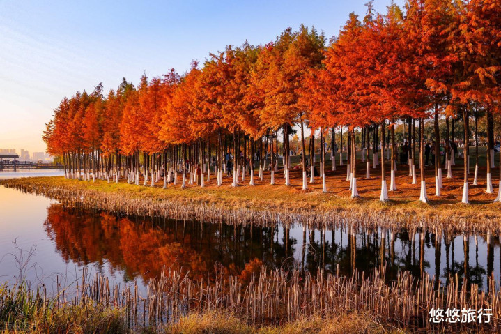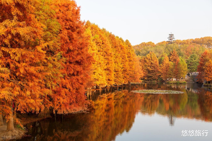 燕雀湖水上森林、玄武湖翠洲、止马岭秘境,水岸边的焦糖色水杉林,倒影美得像油画。