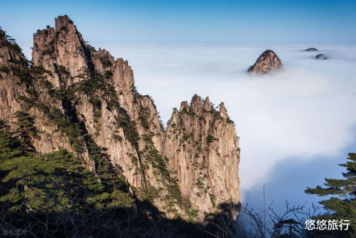 在光明顶和西海大峡谷,冬季云海景观更是让人叹为观止。极目远眺,云海翻涌,山景巍峨。光明顶、始信峰等地的奇松怪石,是必拍的经典之景。